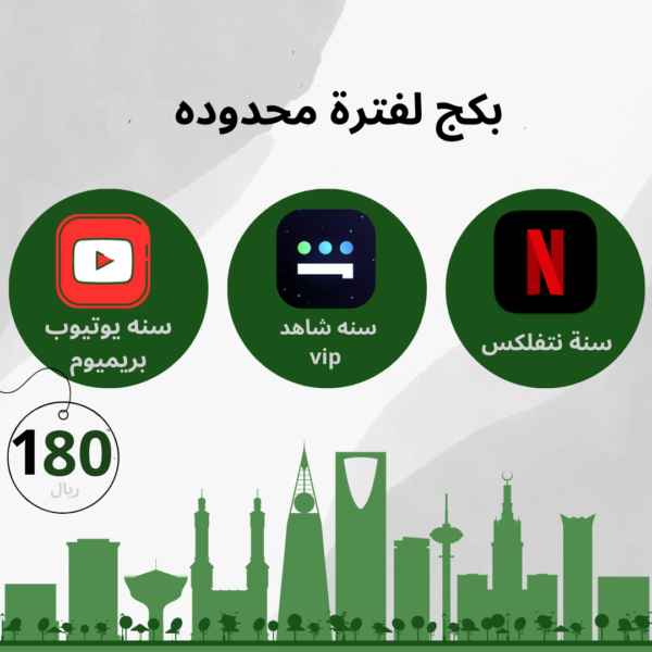 بكج المشاهدة اشتراك سنة ( نتفلكس + شاهد + يوتيوب بريميوم )