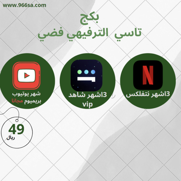 باقة الترفية 3 اشهر ( نتفلكس + شاهد + يوتيوب بريميوم )